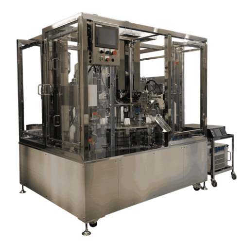 This rotary filling and packaging machine is equipped with an easy-to-operate touch panel and is made entirely of stainless steel, ensuring high hygiene standards. It can fill and seal bottles and tubes.
