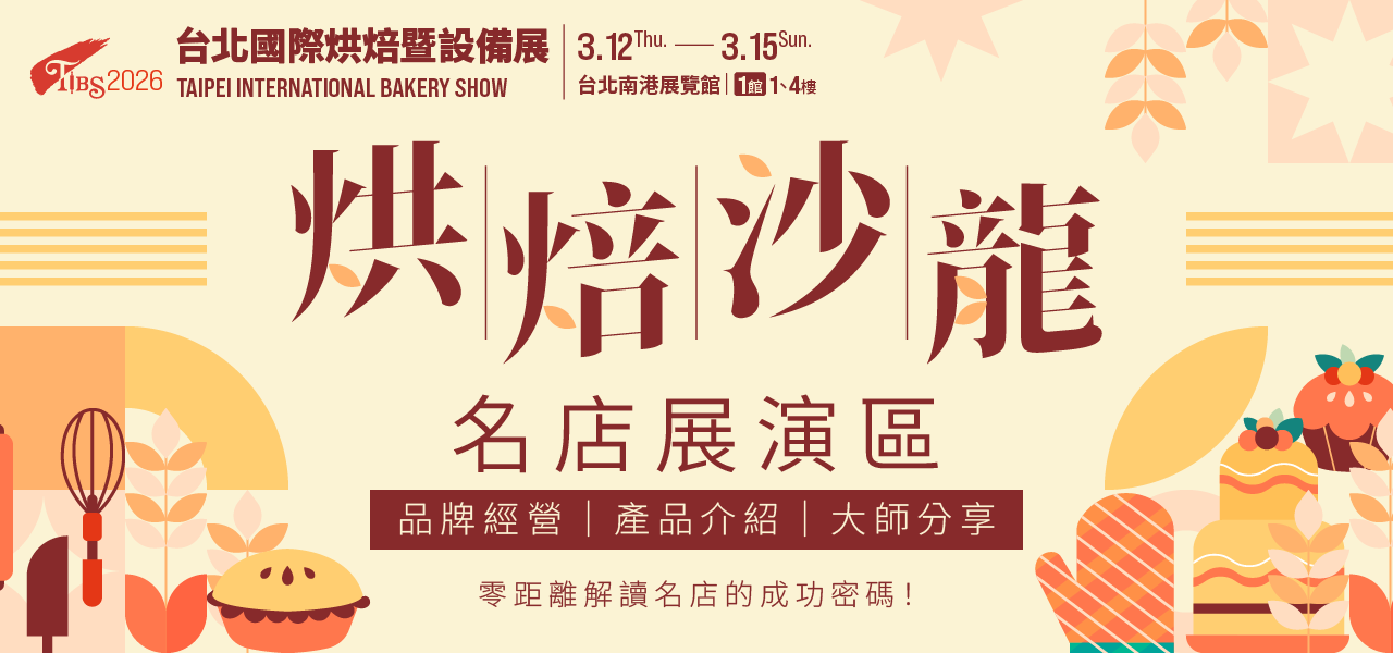 - 報名回函中附有【2026台北國際烘焙暨設備展】的免費索票連結,請務必於2026/3/11(三)23:59前完成索票手續,報名回函本身不具展覽入場效力。