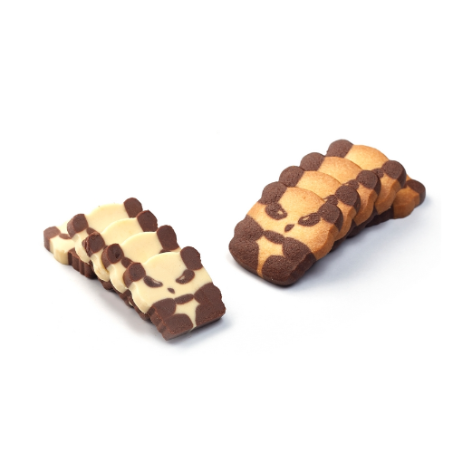 立基熊貓造型曲奇麵糰使用奶油及可可粉精心調製而成,料多味美,使用方便。烤成後迷人的奶油、巧克力香,豐富的配料,片片都吃得到,香氣口感十足,配上茗茶或咖啡,絕對讓你一片接一片,一口接一口,更讓你愛不釋手。