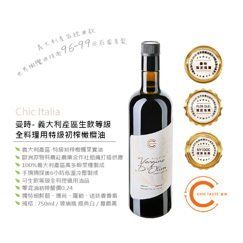曼時 義大利產區 經典款 “油中之王 ” Chic Italia 750ml 料理級果實特級初榨橄欖油