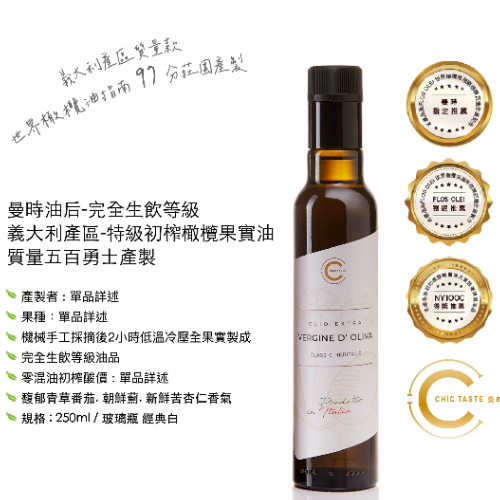 2026 曼時Chic Italia 新摘橄欖油王 750ml 入門款 全料理適用 果實特級初榨橄欖油